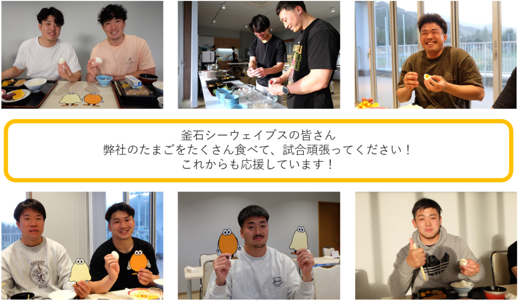 釜石シーウェイブスの皆さんに弊社のたまごを食べていただきました